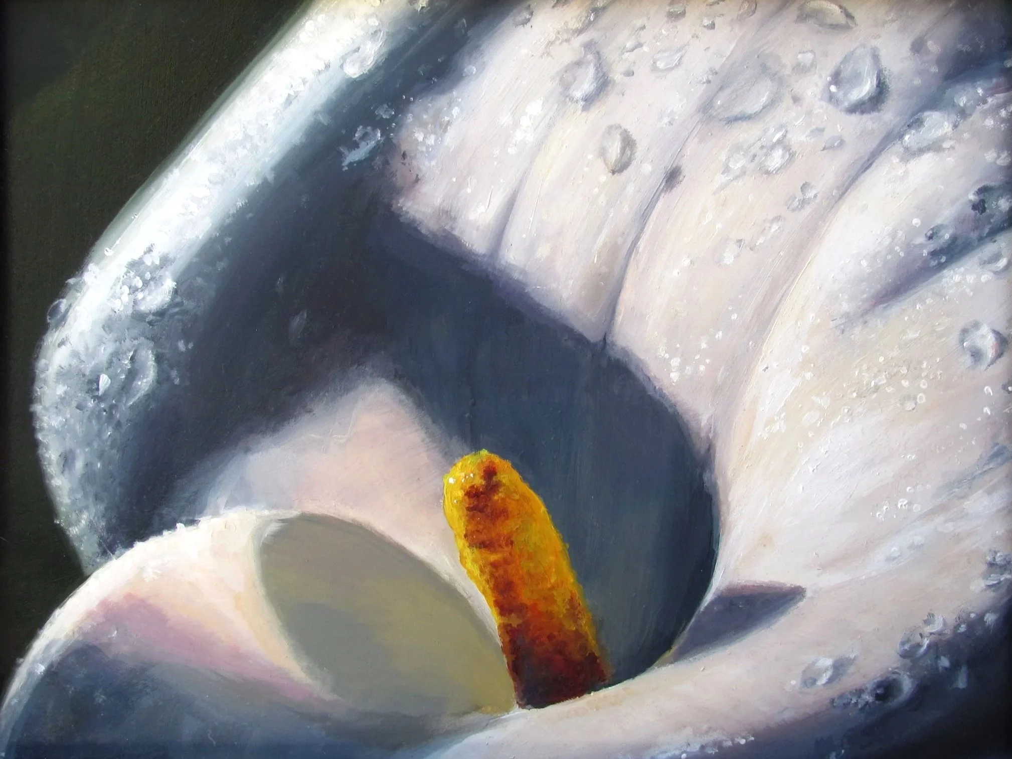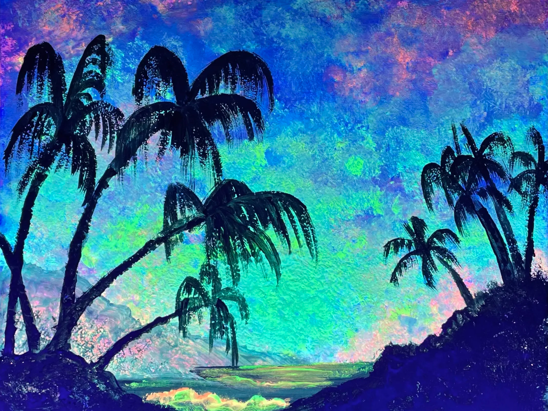 Acrylic paintings with special effects added with glow in the dark pigments.